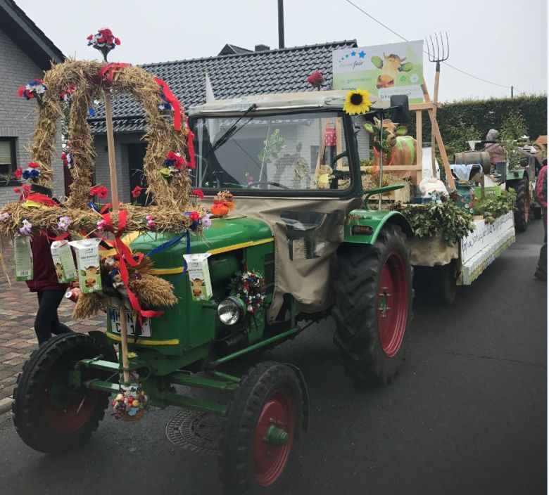 Foto: Die Milchbauern aus der Eifel/NRW haben für die traditionellen Umzüge in ihrer Region liebevoll und mit viel Mühe festlich geschmückte Wagen hergerichtet.
