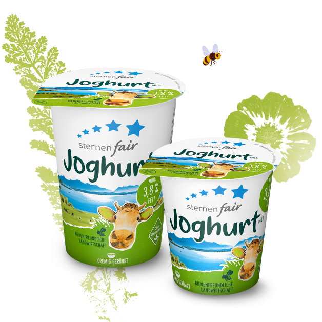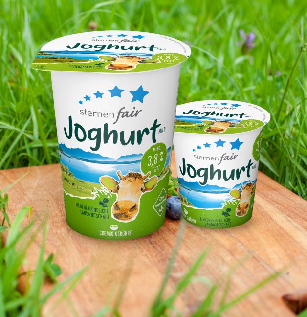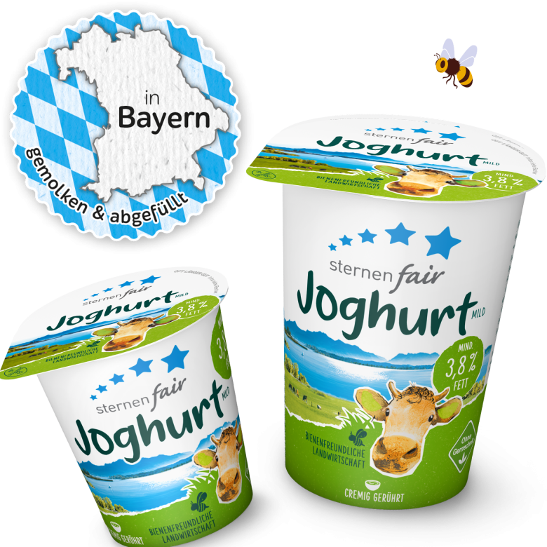 Wir stellen unseren Naturjoghurt aus der frischen sternenfair-Milch unserer Voralpenland Bauern bei der familiär geführten Hofmolkerei „zum Marx" (DE BY-13057 EG) her. Unseren Naturjoghurt gibt es in den Größen 500 g und 150 g.