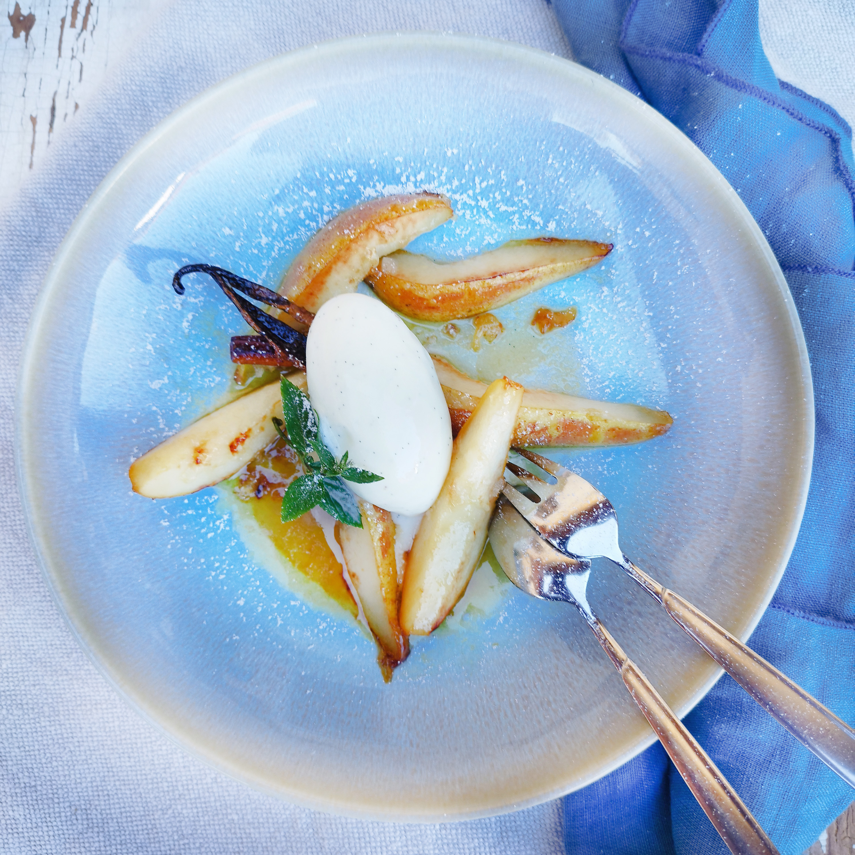 Joghurteis mit Karamellbirnen