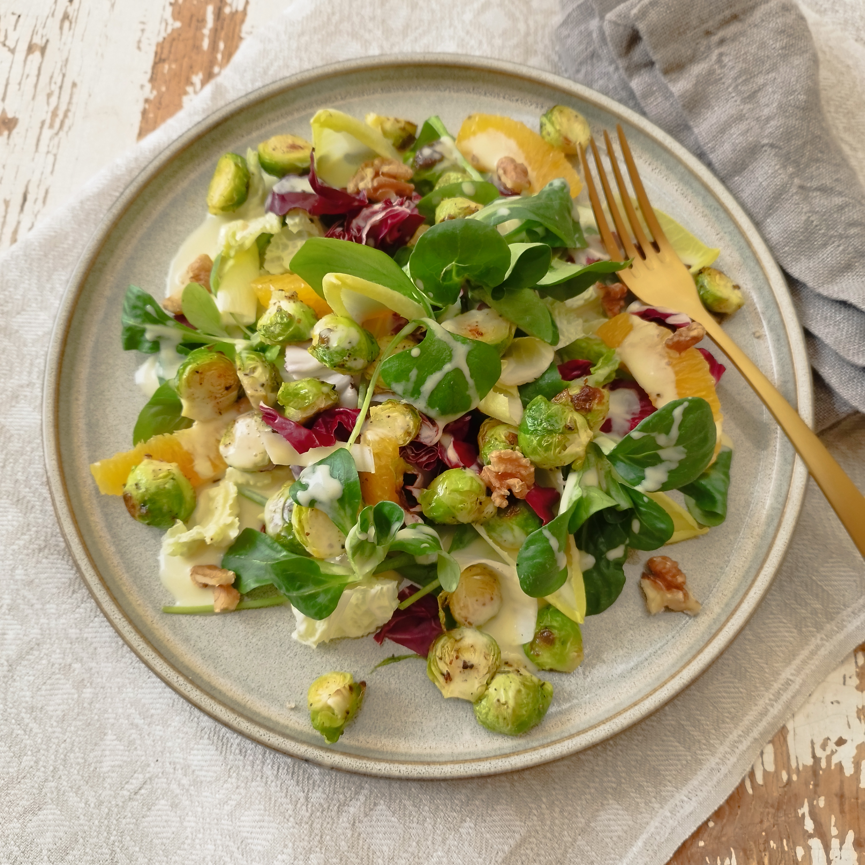 Bunter Wintersalat mit geröstetem Rosenkohl